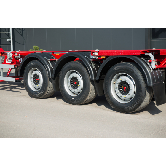 Универсальный полуприцеп-контейнеровоз раздвижной Грюнвальд GR-VCSSt SLB 1100, Мишлен